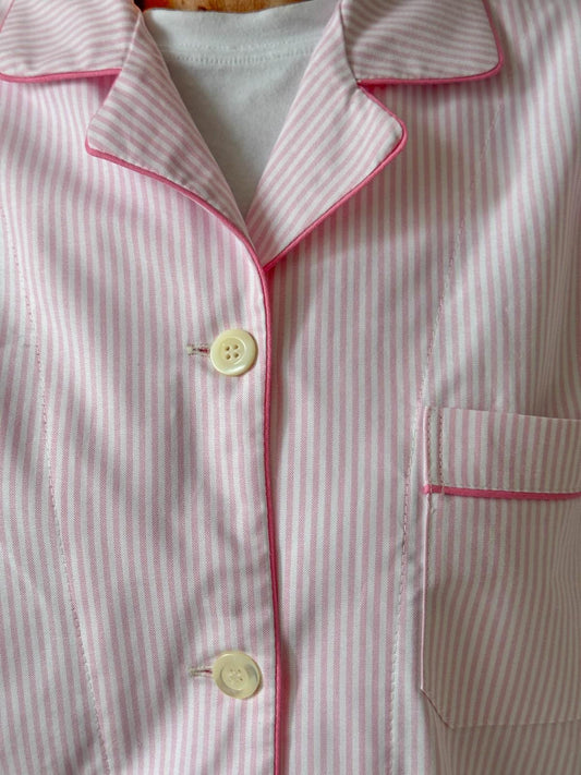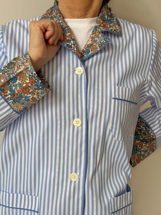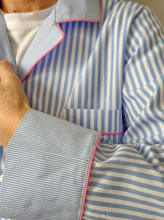 PIGIAMA DONNA OXFORD RIGA AZZURRA PROFILO ROSA