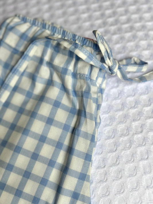 CHILDREN'S TROUSERS IN LIGHT BLUE/RED TARTAN FLANNEL