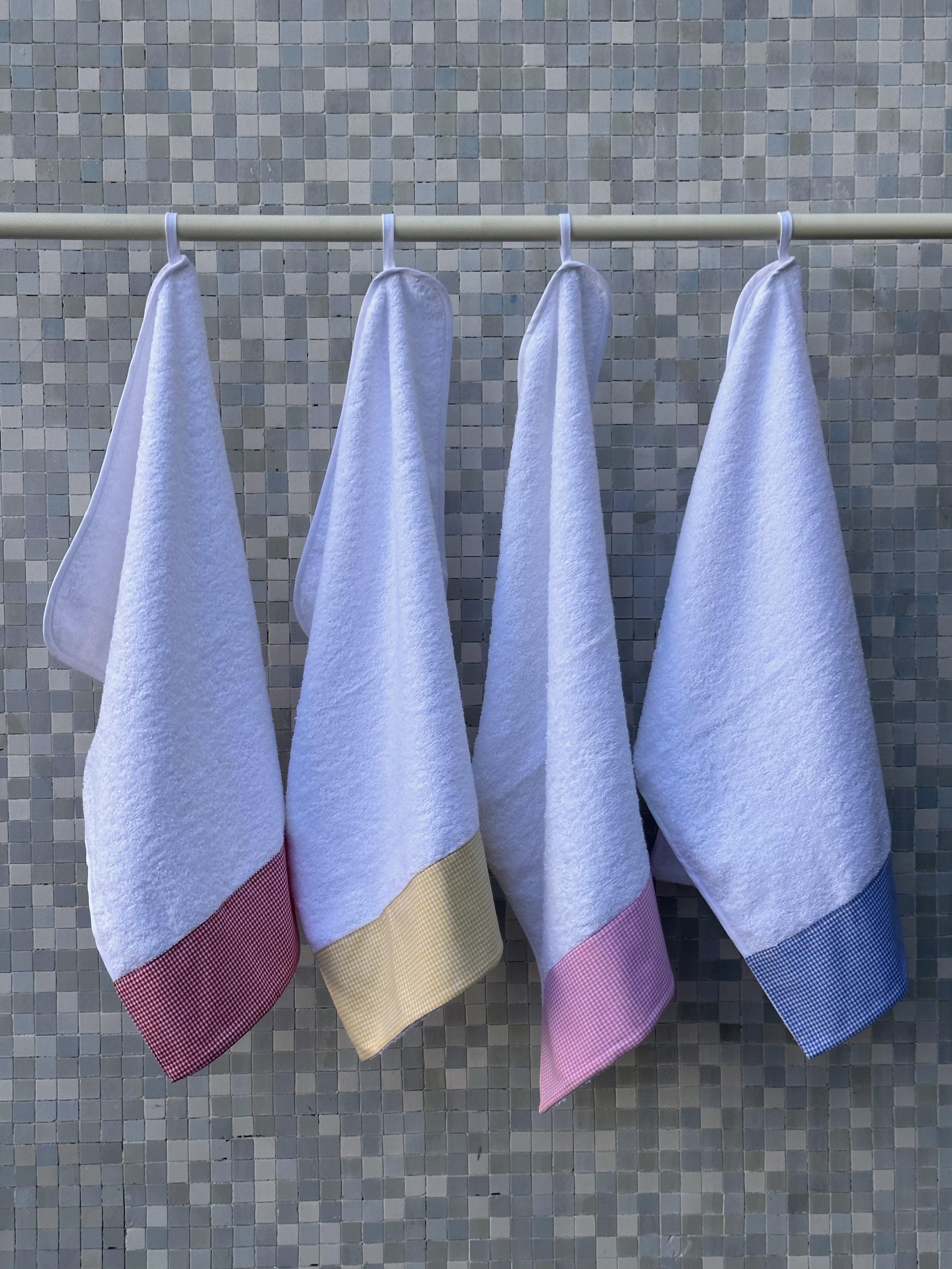 Nursery towel in terry cloth, checked fabric edge. 100% cotton.