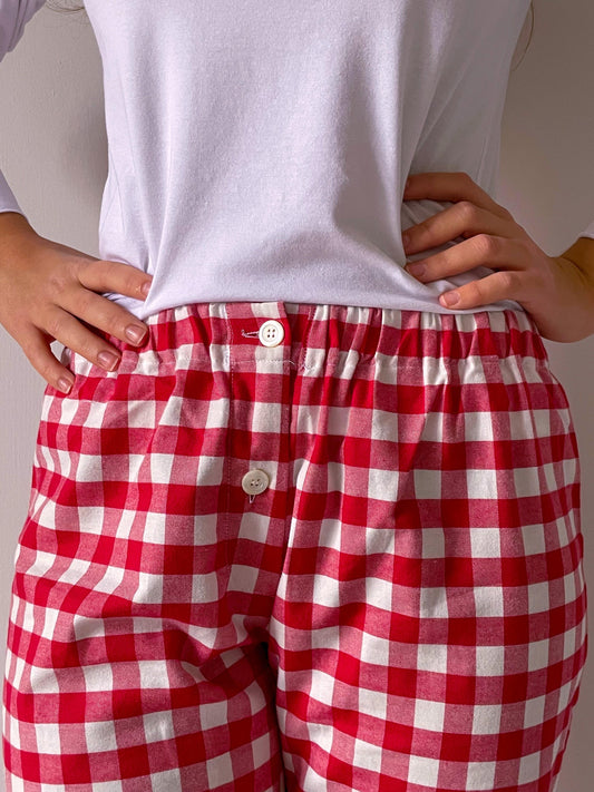 PANTALONI DONNA FLANELLA QUADRO ROSSO