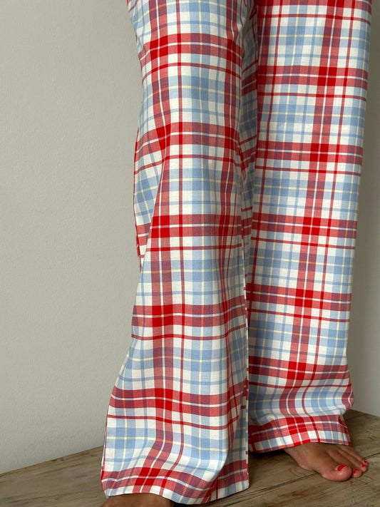 WOMEN'S TROUSERS FLANNEL TARTIN BLUE/RED