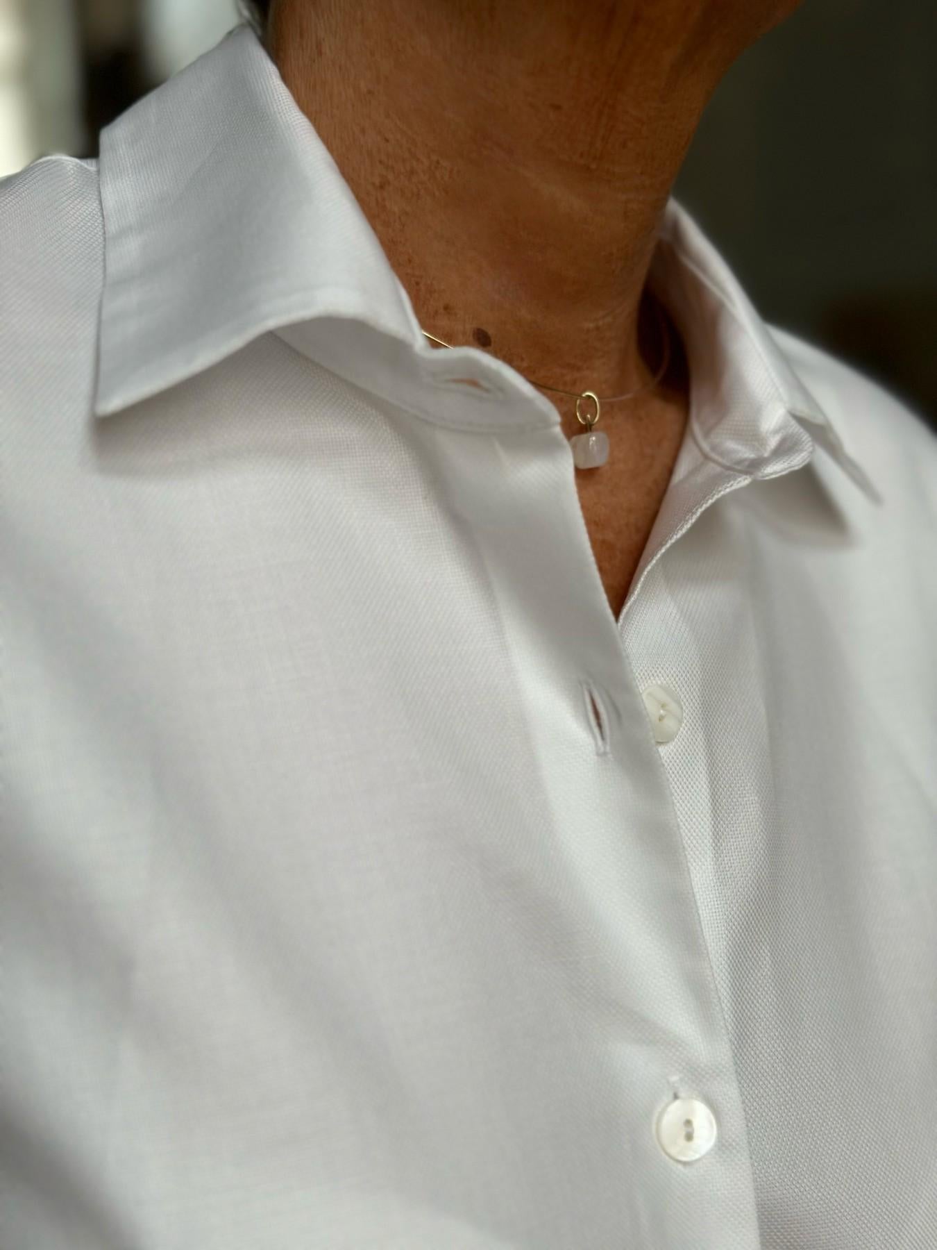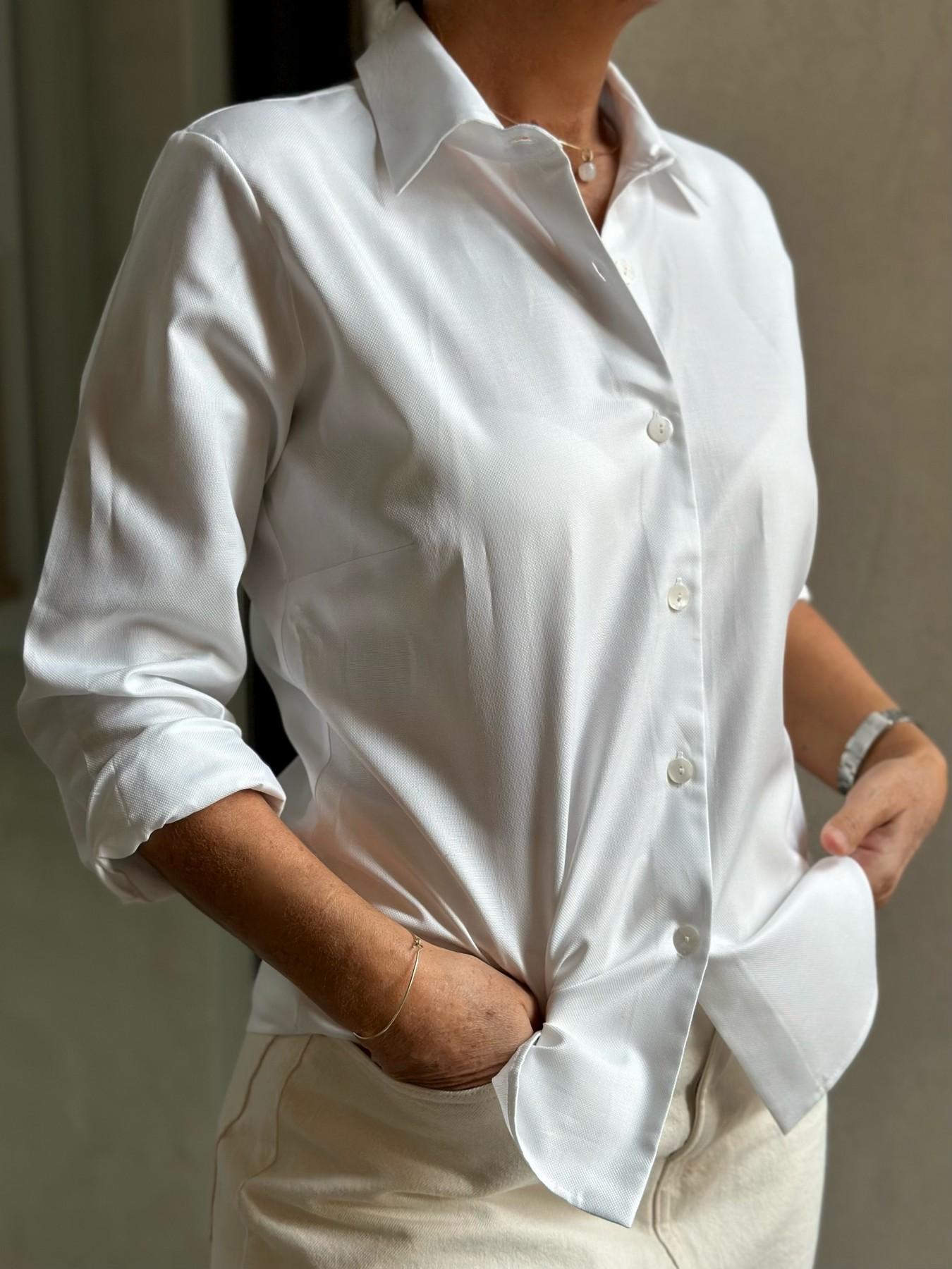 Women's shirt in pure cotton Oxford. Classic cut. Closure with 6 mother-of-pearl buttons. Cuffs with two-button closure.