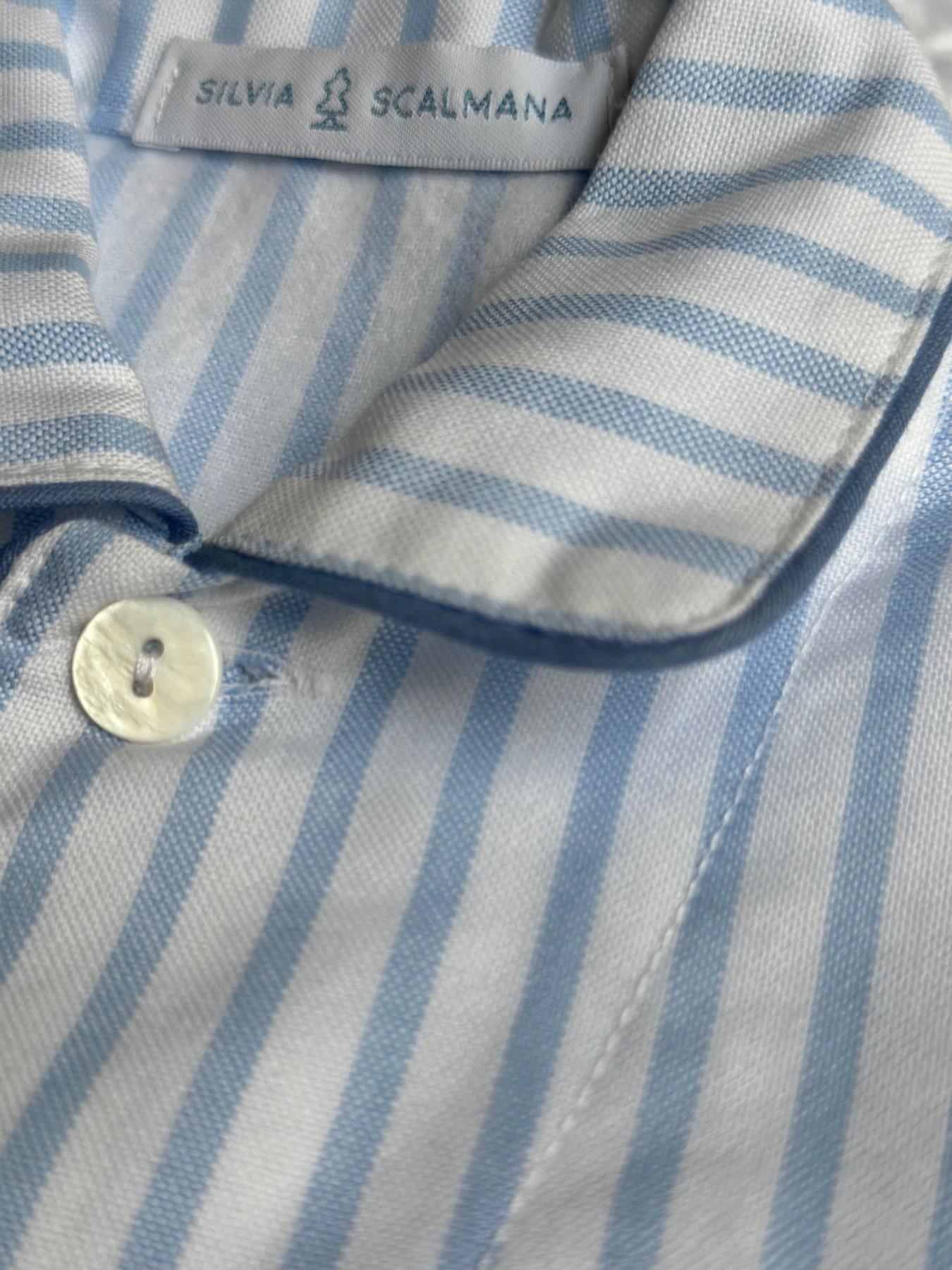 Children's pajamas in pure cotton flannel, with brushed interior. Soft fit. Jacket with 4 mother-of-pearl buttons, with 2 pockets and a breast pocket, cotton profile. Trousers with elastic waist.