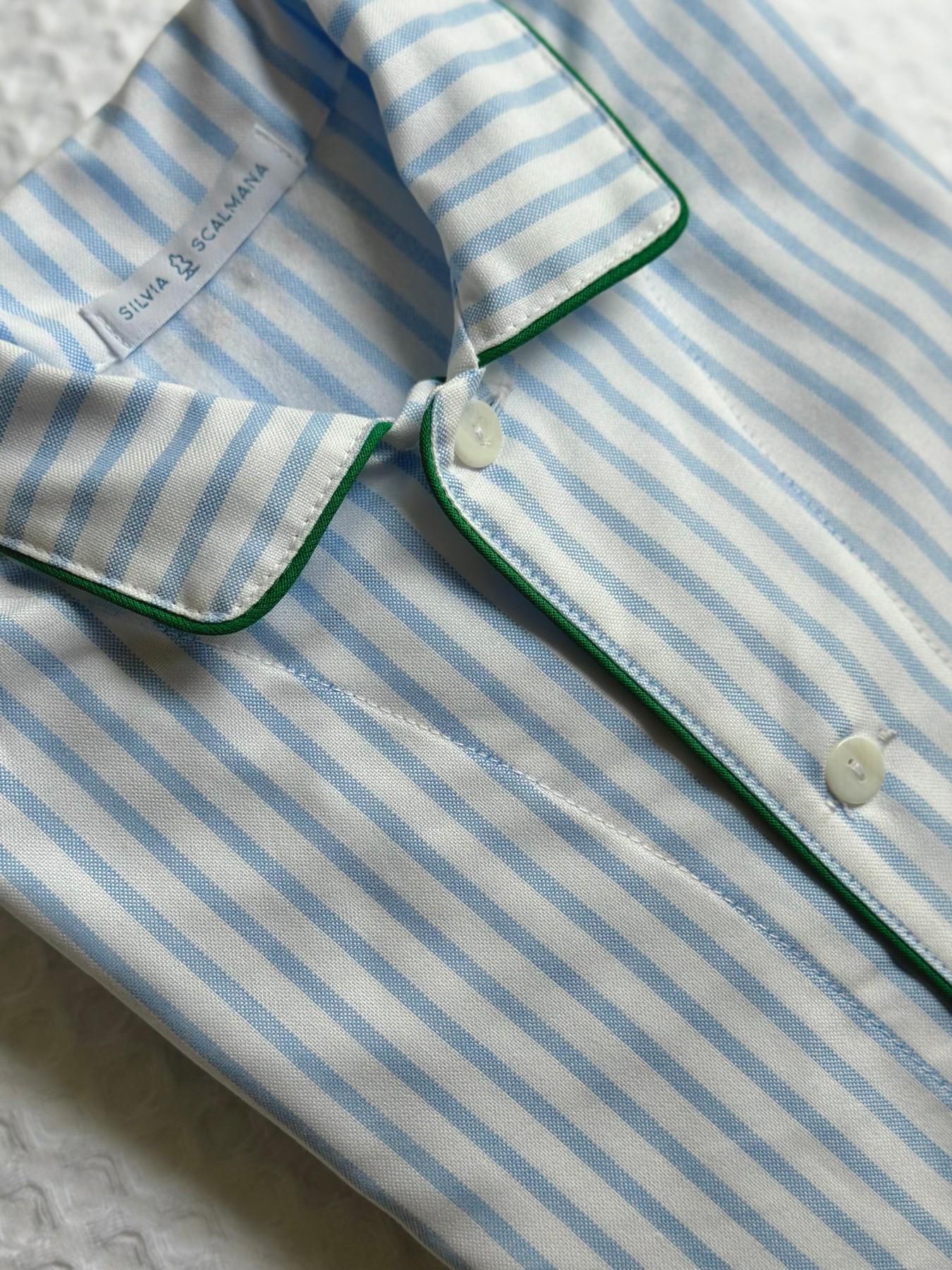 Children's pajamas in pure cotton flannel, with brushed interior. Soft fit. Jacket with 4 mother-of-pearl buttons, with 2 pockets and a breast pocket, cotton profile. Trousers with elastic waist.