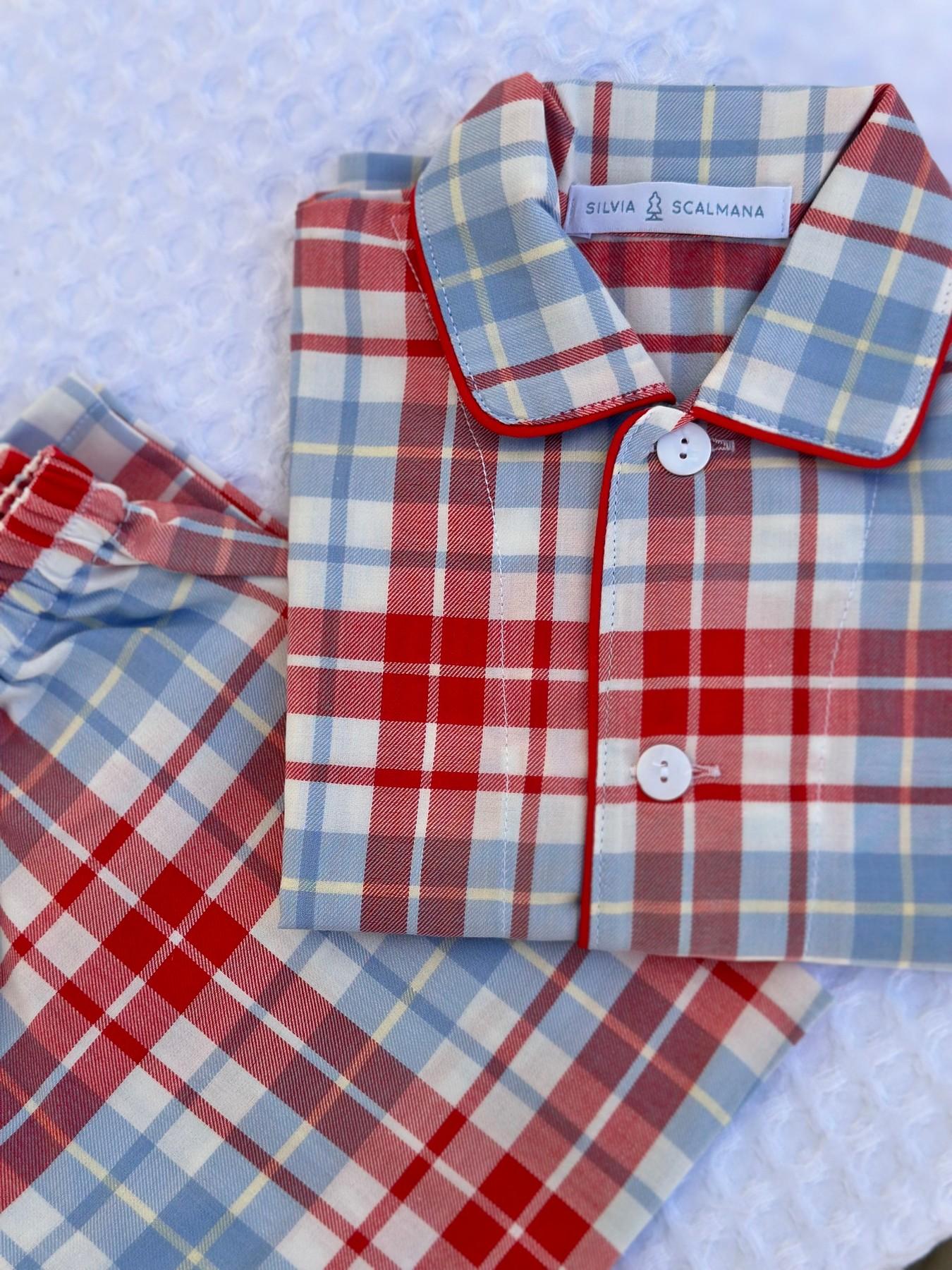 CHILDREN'S PYJAMAS IN TARTIN FLANNEL BLUE/RED