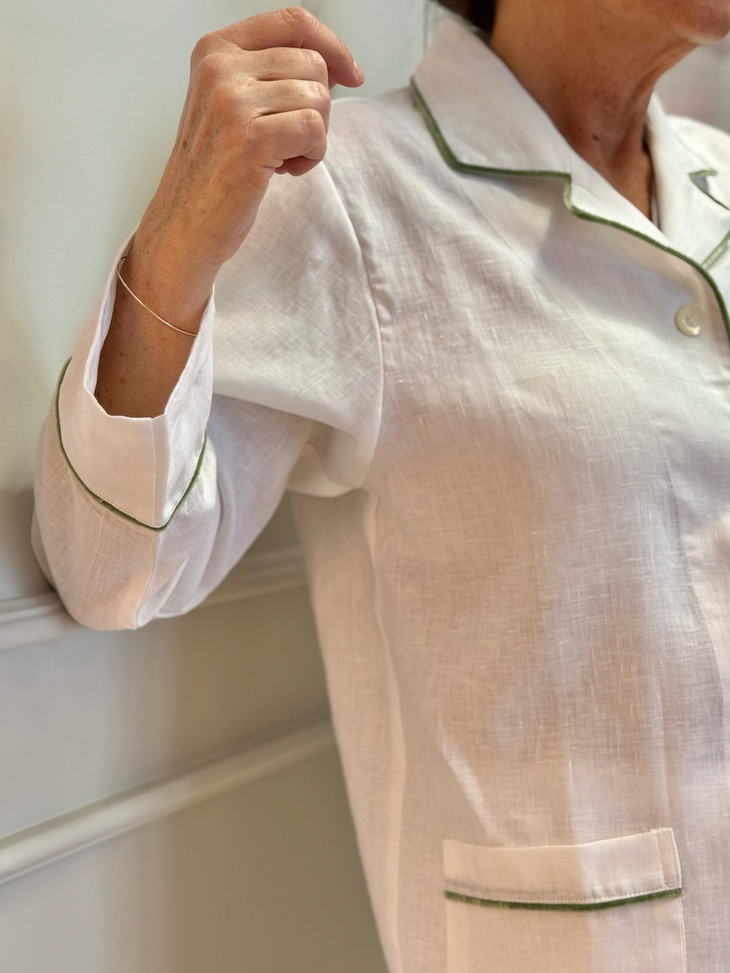 PIGIAMA DONNA IN LINO TAGLIATELLA AZZURRA PROFILO VERDE