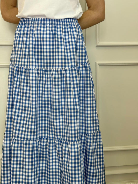 GONNA POPELINE QUADRO BLU