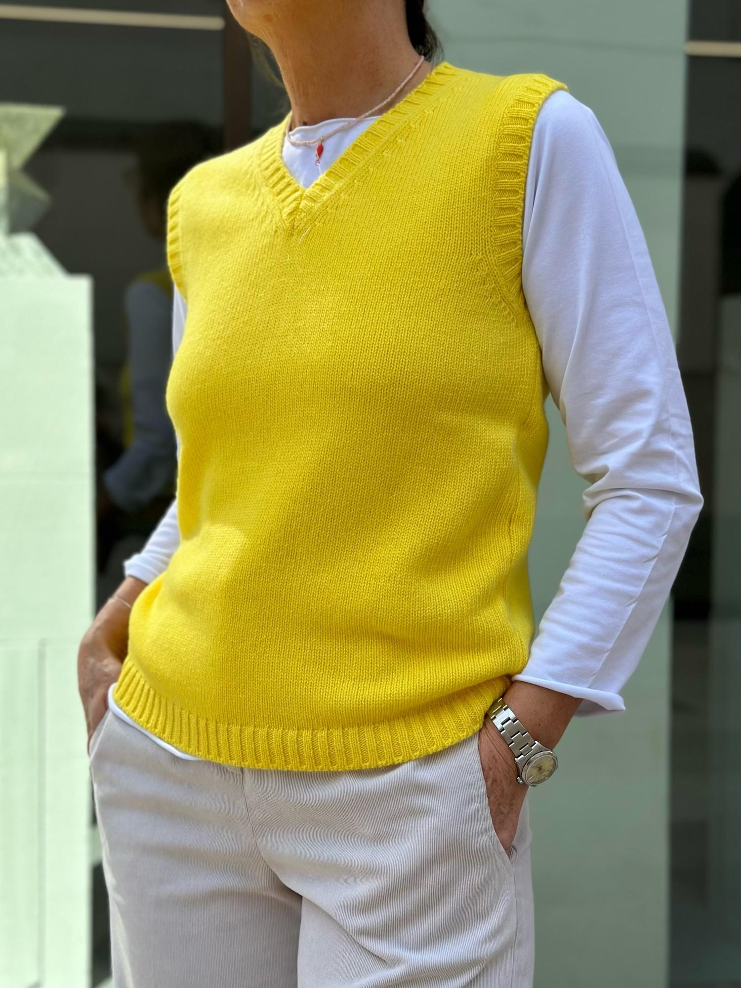 Gilet donna in lana 100%. Vestibilità ridotta. Si consiglia di visionare la tabella taglie.