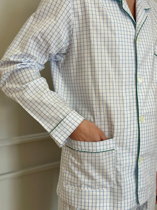 PIGIAMA UOMO FINESTRATO AZZURRO PROFILO VERDE