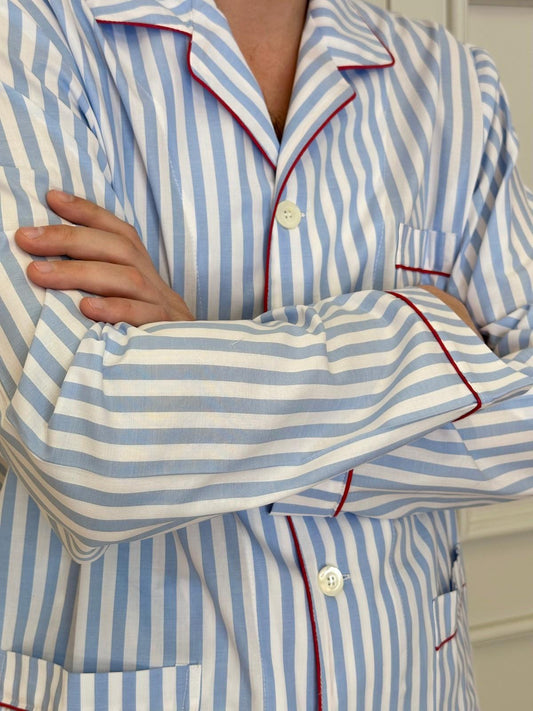 PIGIAMA UOMO TAGLIATELLA AZZURRA PROFILO ROSSO