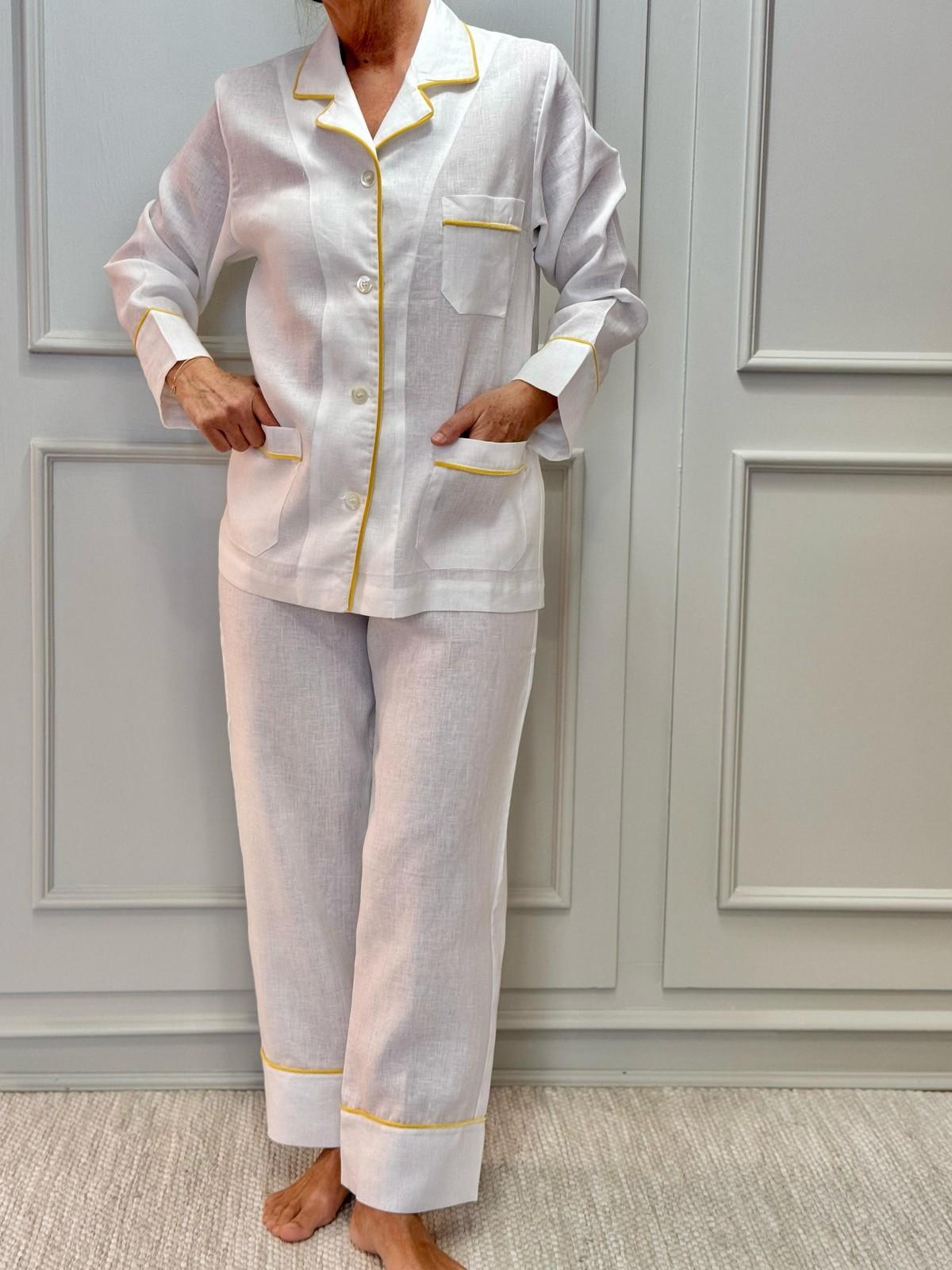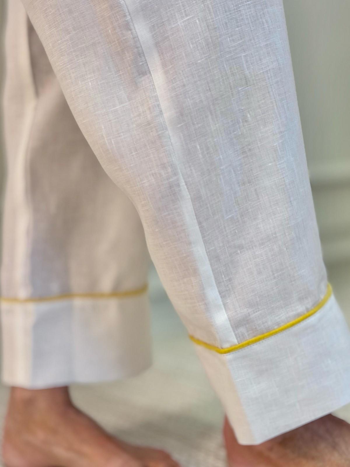 PIGIAMA DONNA IN LINO BIANCO PROFILO GIALLO